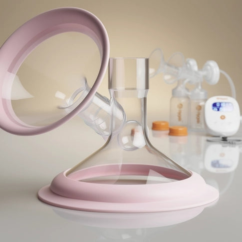 A pair of soft-lined Pano flange funnels designed to support comfortable pumping fit across multiple Hygeia breast pump systems (with the correct Hygeia flange base).